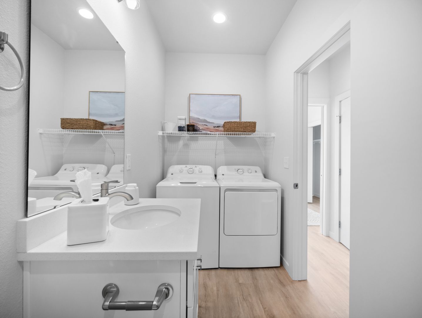 Step inside and experience upscale finishes throughout — from luxury vinyl plank (LVP) flooring to pristine quartz countertops, soft-close shaker-style cabinetry, and stainless steel appliances. The spacious kitchens feature generous counter space and a large peninsula, perfect for entertaining or enjoying a quiet meal at home.